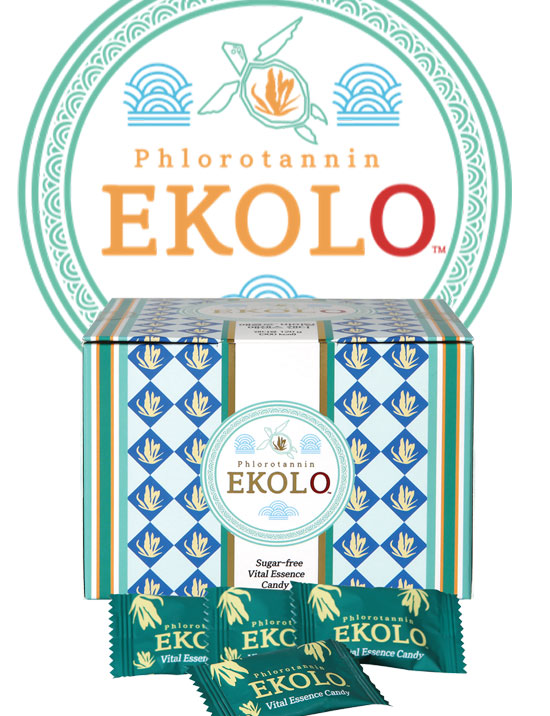 EKOLO™ 바이탈 에센스 캔디는 갈조류에서 유래한 해양 폴리페놀, 플로로탄닌을 담고 있습니다.